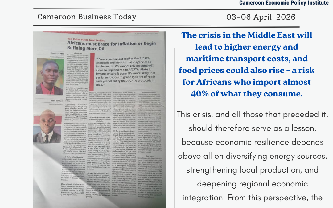 Producing goods in Cameroon remains expensive. Logistics costs represent between 30 and 40% of the final price, a level significantly higher than the global average. Added to this are the high cost of electricity, difficulties in accessing financing, and slow administrative procedures. Under these conditions, even with the elimination of customs duties, Cameroonian products would likely remain uncompetitive.